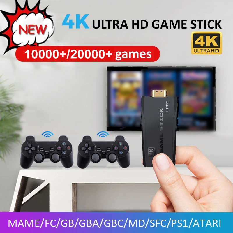 Wireless 4K HDMI TV Game Stick Console Built in 20000+ Games +2 Wireless Gamepad